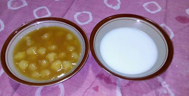 - Rebus air bersama daun pandan hingga mendidih. Setelah itu masukan gula pasir dan gula merah.