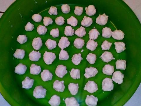 - Masukan bulatan kecil singkong dan tunggu hingga mengambang. Kemudian masukan adonan singkong yang disisihkan agar bubur menjadi kental. Aduk agar tidak gosong. Masak dengan api kecil lalu matikan.